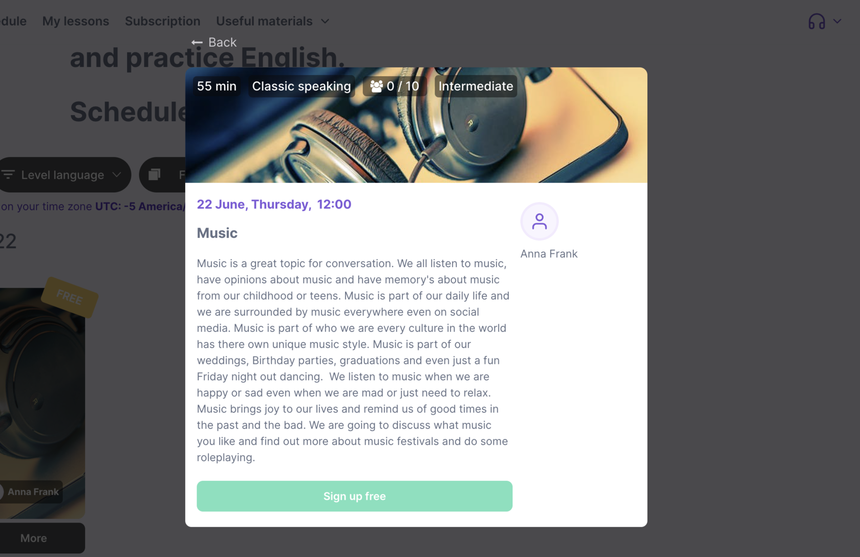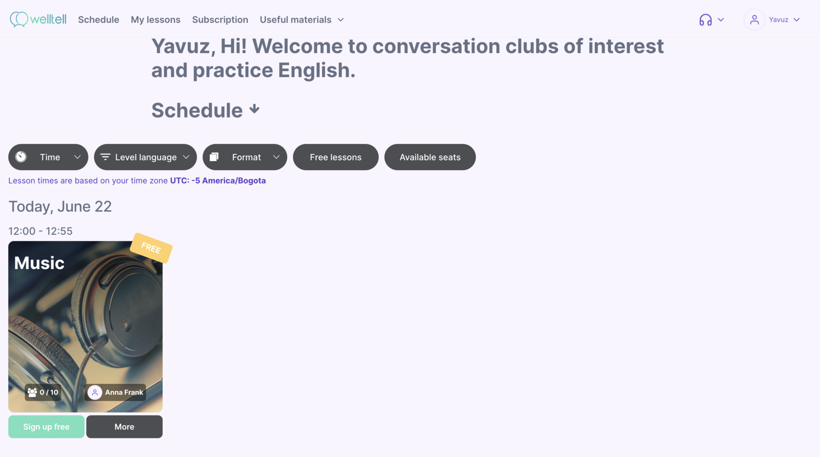 Using the application, a student can sign up for a foreign language lesson / track information about the lesson / receive various notifications.