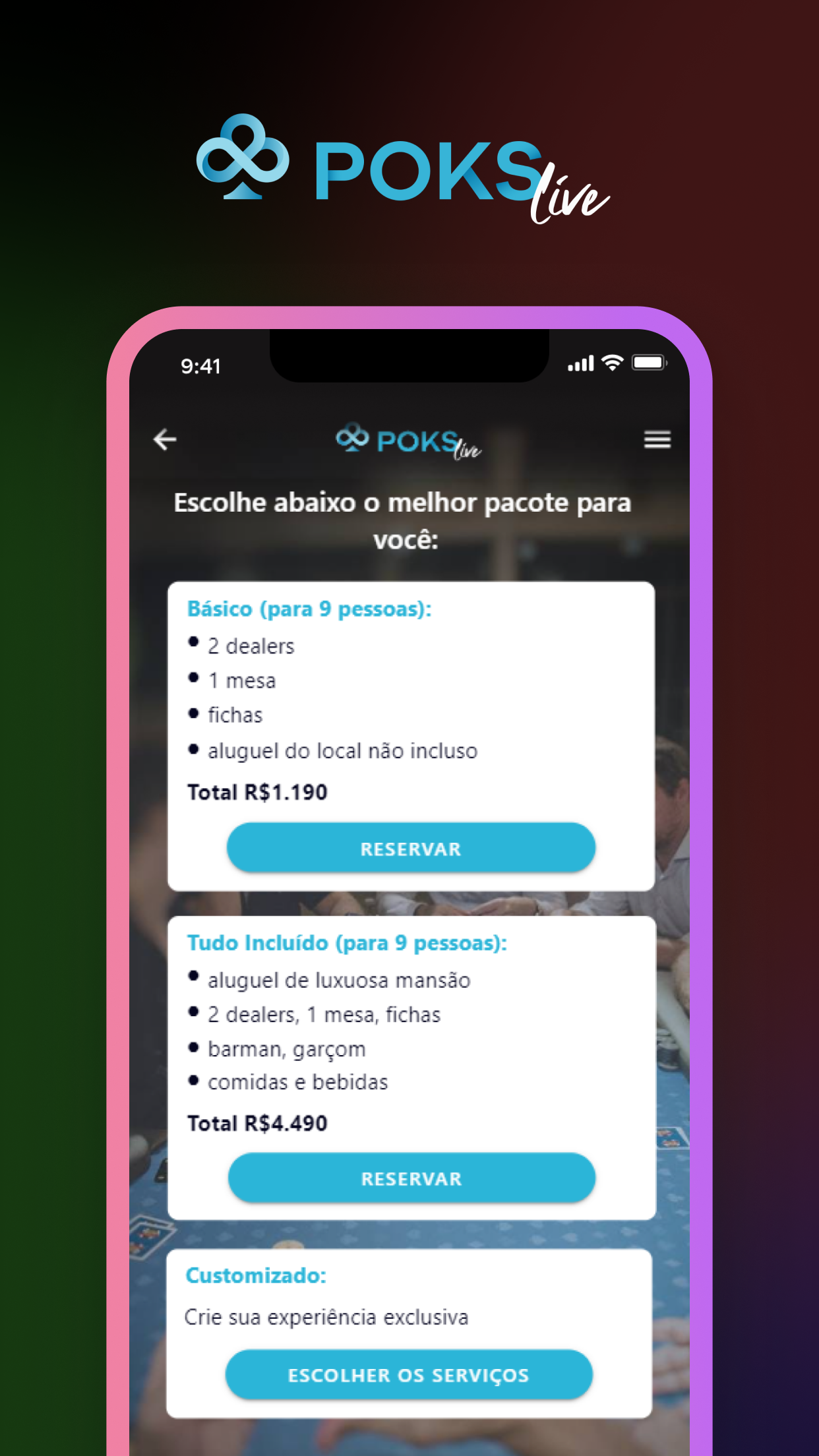 Mobile app for Poks Live company (Brazil). This is a convenient online service for booking poker games.